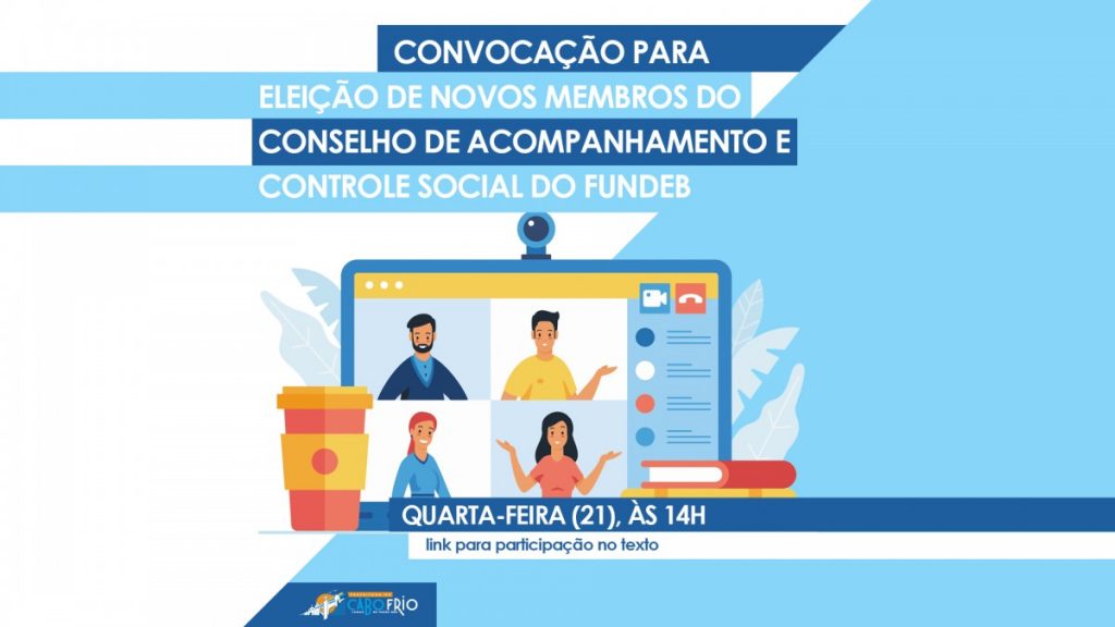 A Prefeitura de Cabo Frio está convocando a comunidade escolar para a reunião virtual de eleição dos novos representantes do CACSFundeb (Conselho de Acompanhamento e Controle Social do FUNDEB) do município.