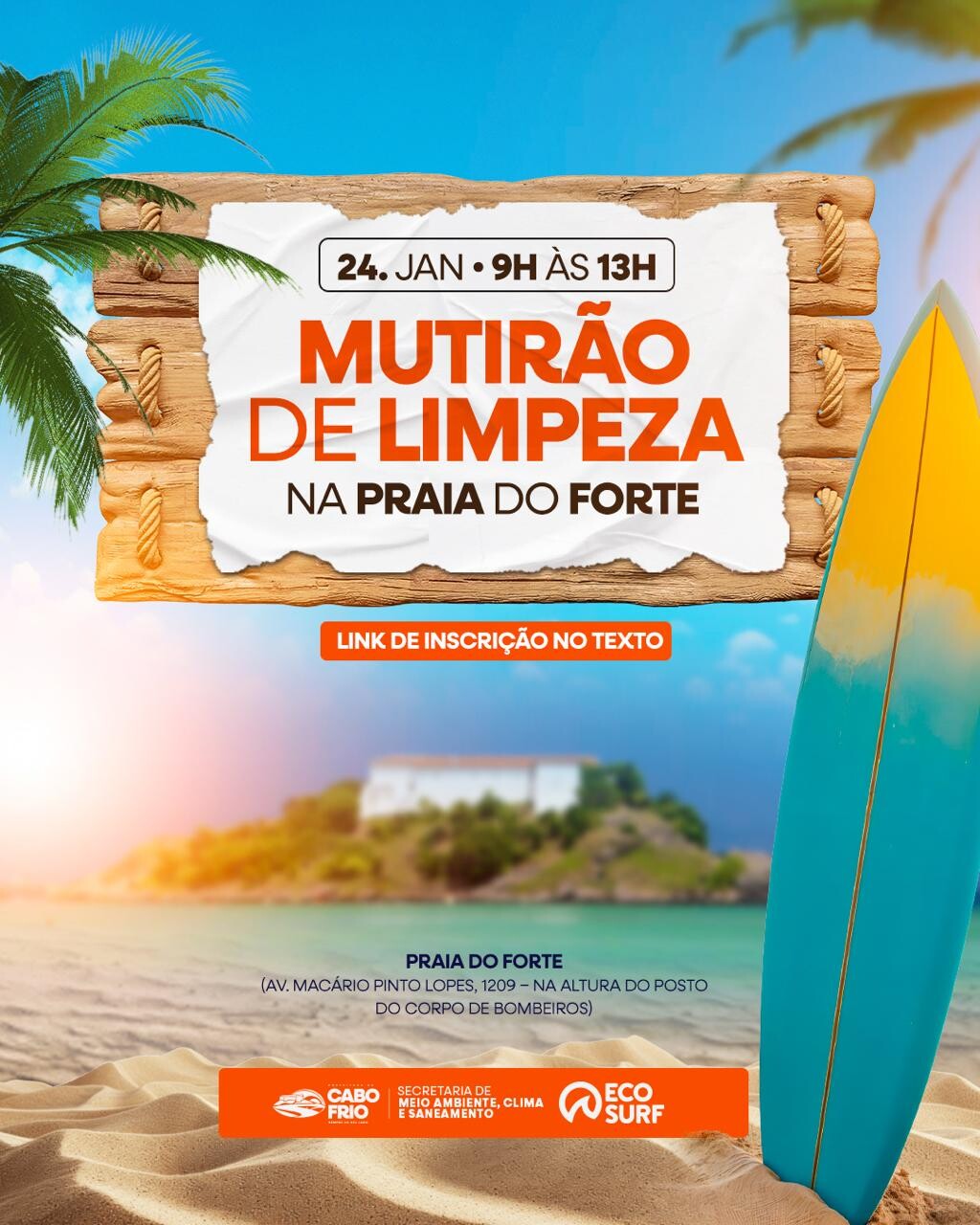 A Praia do Forte, em Cabo Frio, recebe no próximo sábado (24), a partir das 9h, um mutirão de limpeza promovido pelo Instituto Ecosurf. A ação tem o apoio da Prefeitura, por meio da Secretaria de Meio Ambiente, Clima e Saneamento. O evento contará com a participação de voluntários. O objetivo da iniciativa é unir… Praia do Forte recebe mutirão de limpeza em parceria com o Instituto Ecosurf
