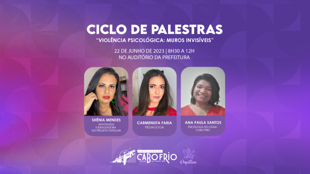 Ação acontece na quinta (22), no auditório da Prefeitura, das 8h30 às 12h A equipe técnica do Centro Especializado de Atendimento à Mulher (Ceam) de Cabo Frio participa, nesta quinta-feira (22), do ciclo de palestras “Violência psicológica: muros invisíveis”, do Projeto Papillon, que acontece no auditório do Governo Municipal. A iniciativa é uma parceria entre […]