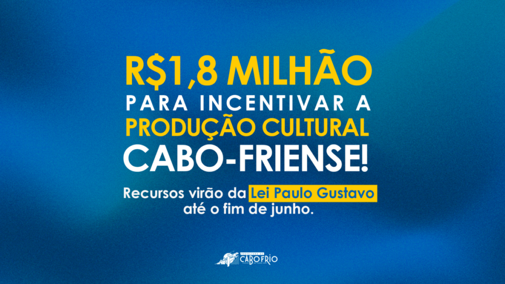 Cultura de Cabo Frio vai receber R$ 1,8 milhão, da Lei Paulo Gustavo, até o fim de junho