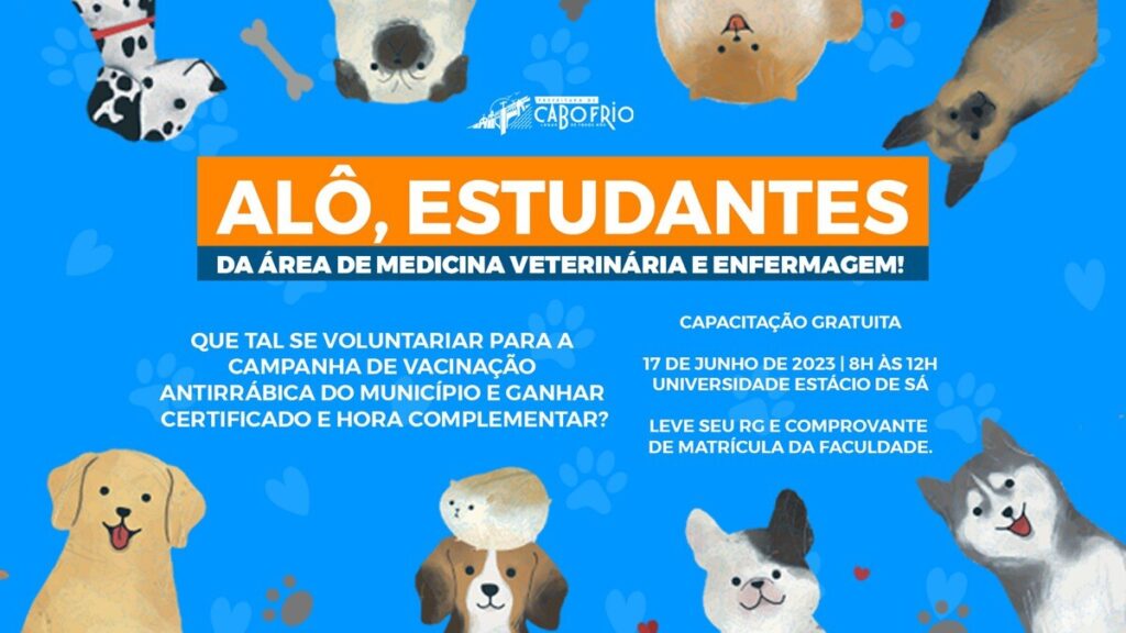A Saúde de Cabo Frio já está se preparando para participar da Campanha Nacional de Vacinação Antirrábica. Técnicos do setor de Vigilância Sanitária da Secretaria de Saúde vão promover uma capacitação gratuita, que inicia neste sábado (17), das 8h às 12h, no auditório da Universidade Estácio de Sá, em Cabo Frio. Haverá ainda mais duas aulas no mês de julho e agosto, com data ainda a ser divulgada.