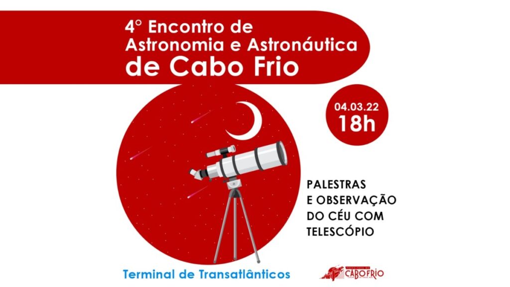Cabo Frio vai sediar a quarta edição do Encontro de Astronomia e Astronáutica, neste sábado (4), no Terminal de Transatlânticos. O evento vai ocorrer a partir das 18h, com palestras e observação do céu feita com um telescópio construído com material inteiramente reciclável.