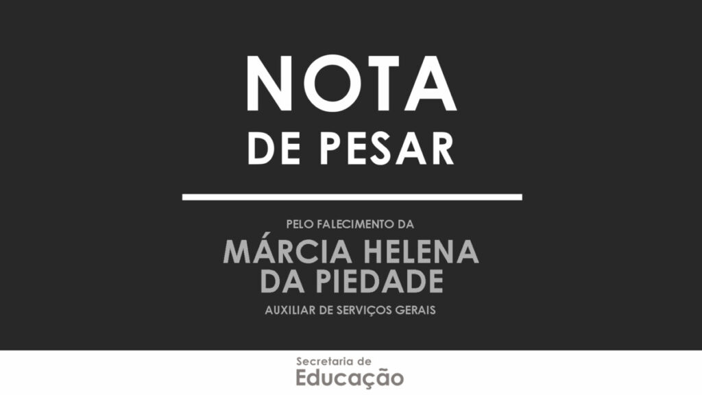 A Secretaria Municipal de Educação de Cabo Frio comunica o falecimento da servidora Márcia Helena da Piedade, que atuava como auxiliar de serviços gerais na Escola Municipal Alfredo Castro. Neste momento de dor e consternação, a equipe gestora lamenta a perda e transmite os sentimentos aos familiares e amigos da funcionária.