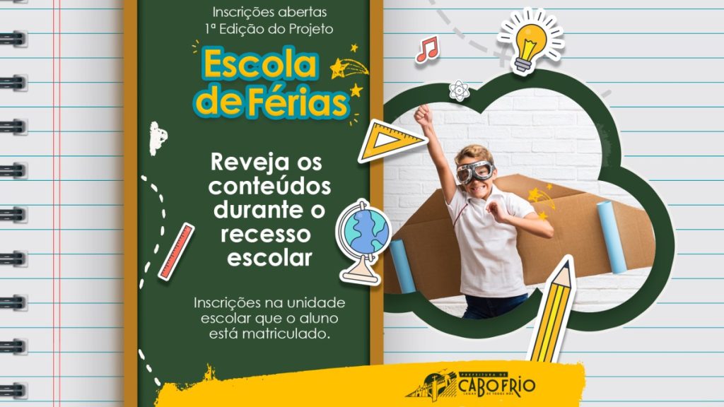 Estão abertas as inscrições para a primeira edição do Projeto Escola de Férias, promovido pela Prefeitura de Cabo Frio, por meio da Secretaria de Educação.