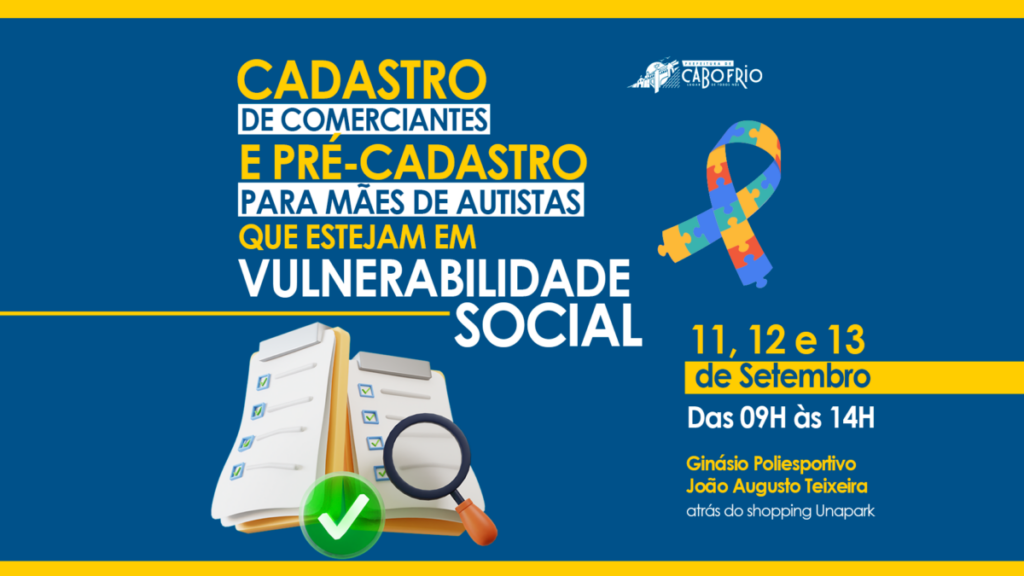 Ação acontece de 11 a 13 de setembro, das 9h às 14h, no Ginásio Poliesportivo de Tamoios Entre os dias 11 e 13 de setembro, a Prefeitura de Cabo Frio vai realizar mais um mutirão da Moeda Social Itajuru para cadastro de comerciantes e pré-cadastro para mães de autistas que estejam em vulnerabilidade social. A […]