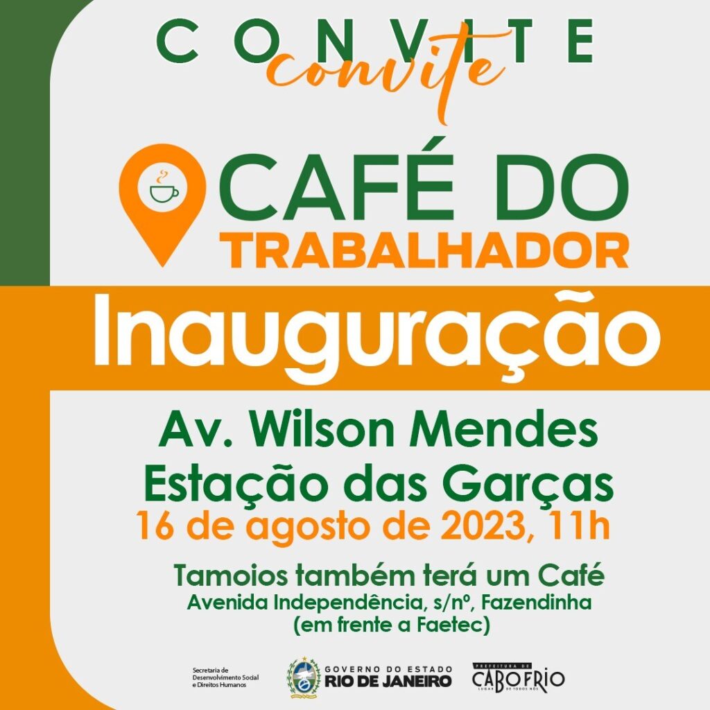 Programa será instalado no bairro Jacaré, na Avenida Wilson Mendes. Tamoios também contará com novo polo Em parceria com o Governo do Estado, a Prefeitura de Cabo Frio reinaugura, nesta quarta-feira (16), um polo do Café do Trabalhador, na Avenida Wilson Mendes, no bairro Jacaré. A solenidade de inauguração será realizada às 11h, com as […]