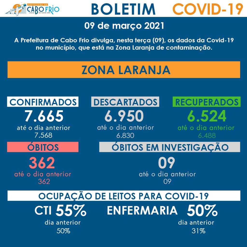 A Prefeitura de Cabo Frio divulga, nesta terça (09), os dados da Covid-19 no município, que está na Zona Laranja de contaminação. Até o momento são: