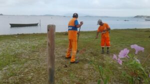Nas Palmeiras, 10 funcionários deram início à capina, roçada de grama e varrição da orla. Na próxima semana, a equipe recebe um reforço e a ação ganhará as demais ruas do bairro. O mesmo acontece na Praia do Siqueira.