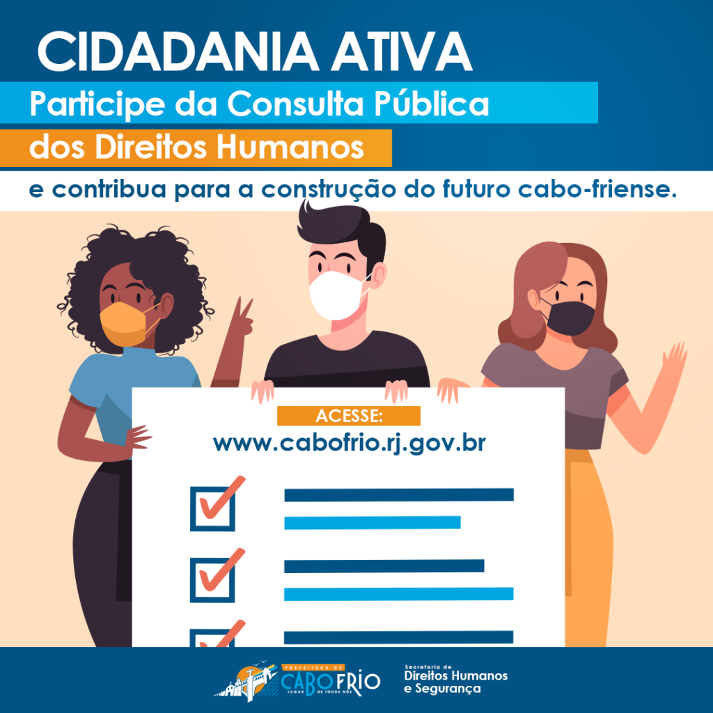 A Prefeitura de Cabo Frio disponibilizou, nesta terça-feira (09), uma nova ferramenta para conhecer um pouco mais os desejos e o perfil da população cabo-friense. A consulta pública, desenvolvida pela Superintendência de Direitos Humanos, está disponível no site oficial do governo: basta clicar na aba de Serviços (na capa do site), em seguida descer até o espaço “Para o Cidadão”, e clicar em “Pesquisa Pública Direitos Humanos”.