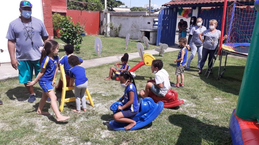 A Escola Municipal Demerval Alves Rangel, no bairro Unamar, em Tamoios, os alunos da Educação Infantil participaram de brincadeiras e receberam a visita de um dinossauro que animou a tarde da criançada. Já a Escola Municipal Professora Janaína Telles Martins, em Santo Antônio, ofereceu pula-pula e cama elástica para os alunos.