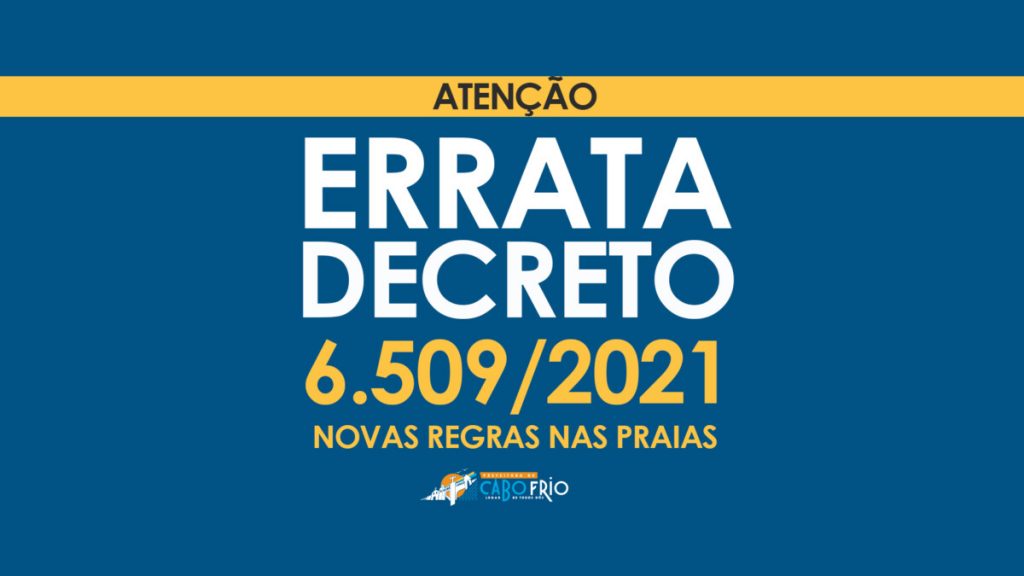A Prefeitura de Cabo Frio comunica uma errata na edição do Decreto 6.509/2021, a respeito de mudanças nas regras de ordenamento das praias do município, entre as medidas de combate à proliferação do coronavírus.